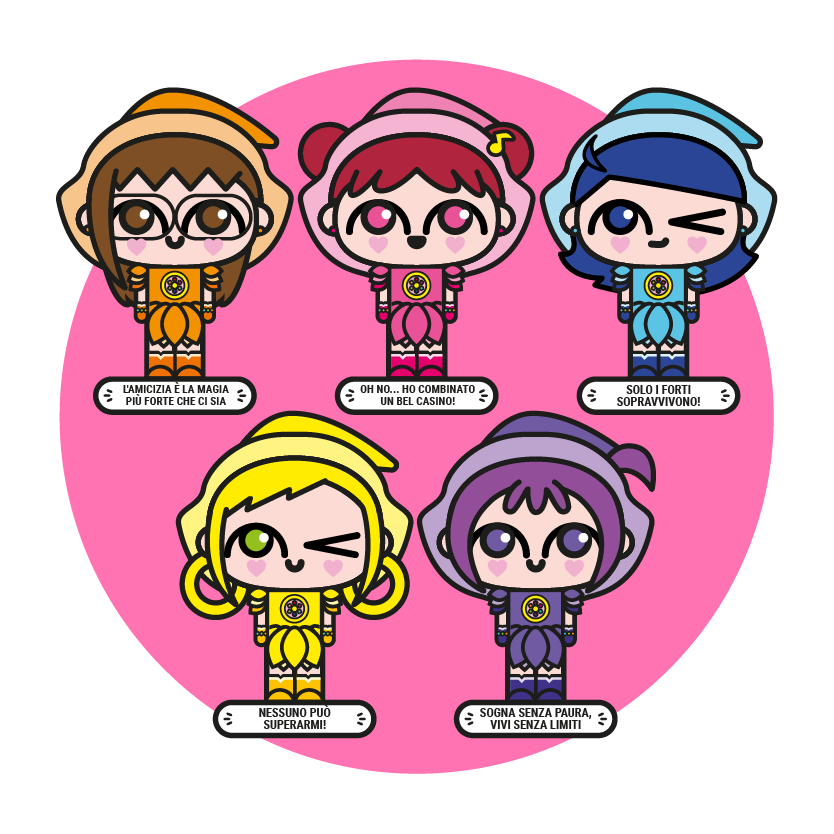 Questa Collection include 5 Micro Me a tema Streghe della musica, corrispondenti a quelli mostrati in foto.